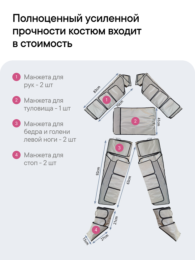 ✔Костюм на все тело, 20 электродов и комплект бандажей входит в комплектацию прибора!