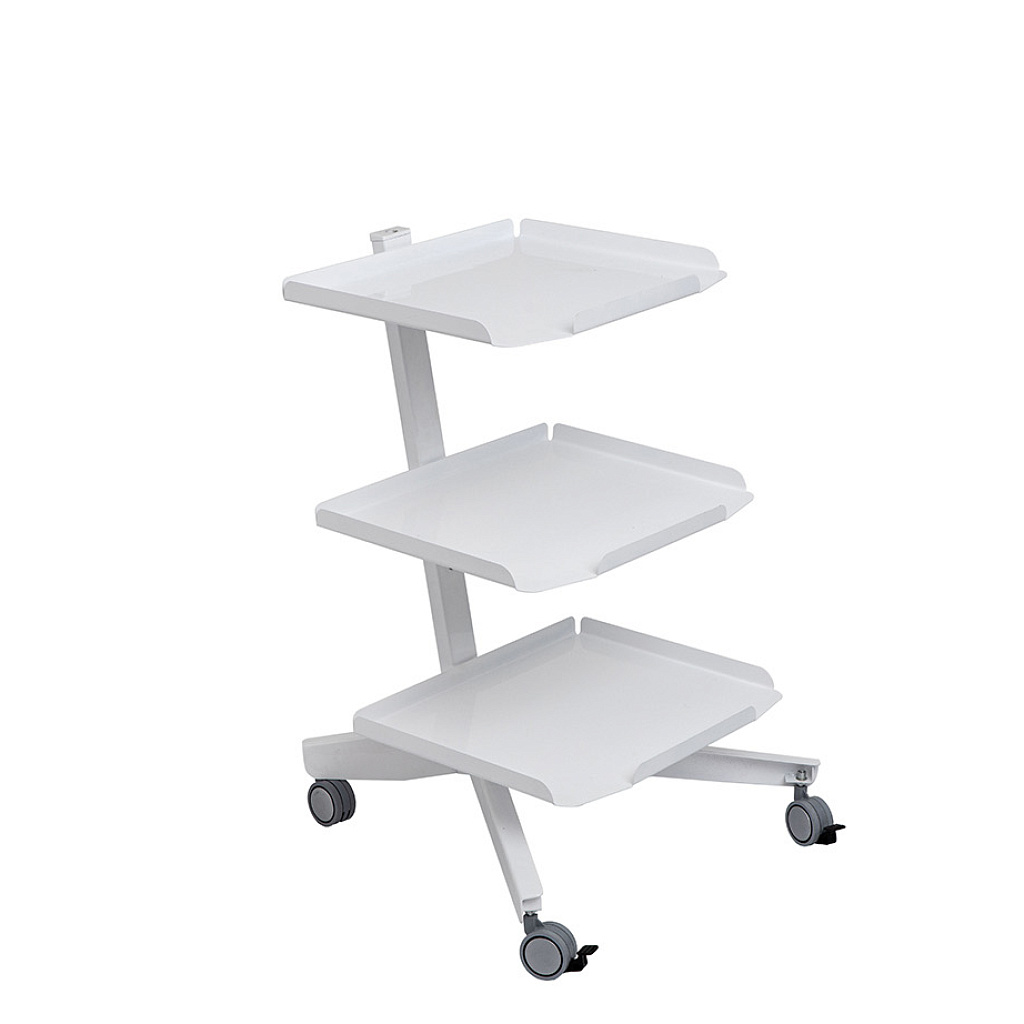 Столик имеет 3 полки с отогнутыми вверх бортиками, которые предотвращают скатывание и падение мелких предметов с поверхности полок.